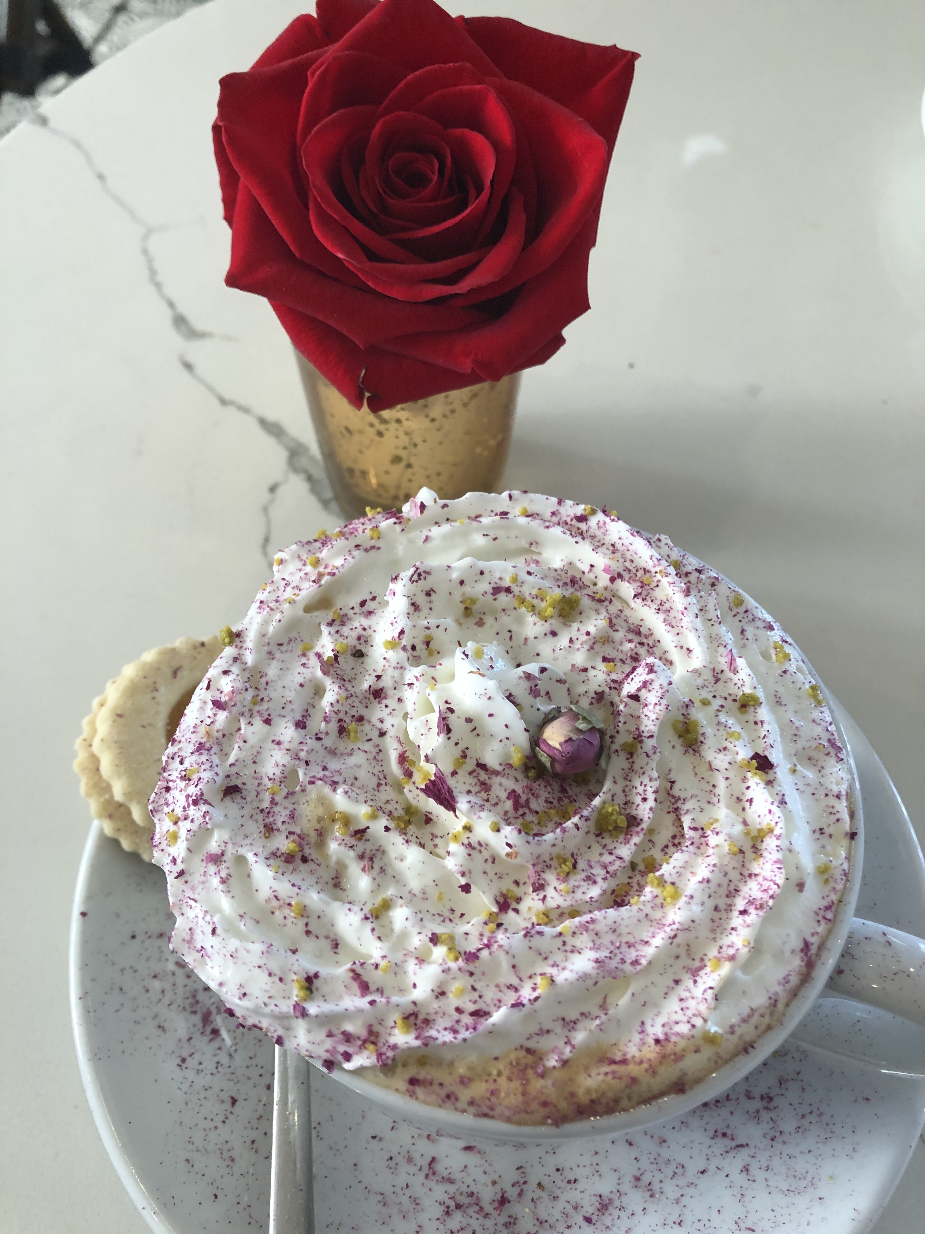 Picture of rose latte, Utopia Latte from Utopia Café located at the Tustin District, Tustin, California. GO ahead, stop in and have a treat.